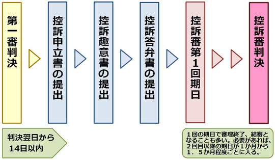 控訴棄却の決定もし判決から14日間を過ぎてしまってから控訴の申立てをしたときや、指定された日までに「控訴趣意書」を提出しなかった場合、その他控訴を申し立てる方法が明らかに間違っている場合などには、裁判が開かれないで「控訴を認めない」との判断(決定)がされ、第一審の裁判がそのまま確定してしまいます。これを「控訴棄却(こうそききゃく)の決定」といいます。