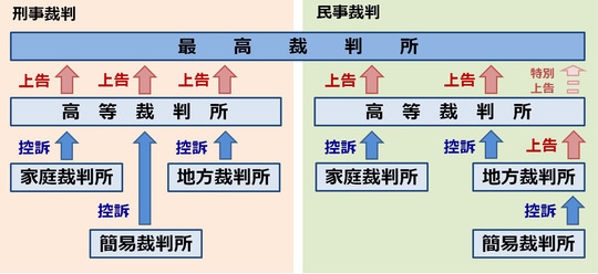 控訴は第1審の判決に対する不服申し立てのことであり、上告とは第2審の判決に対する不服申し立てのことです。一般的な、刑事事件の裁判では簡易裁判所か地方裁判所で行われますので、控訴したときの第2審は高等裁判所で新たに裁判が開かれます。刑事事件の場合は、判決に対して、被告人・弁護士側と検察官側の両者が上訴権の放棄を申し出れば、14日の経過がなくてもその時点で判決が確定します。